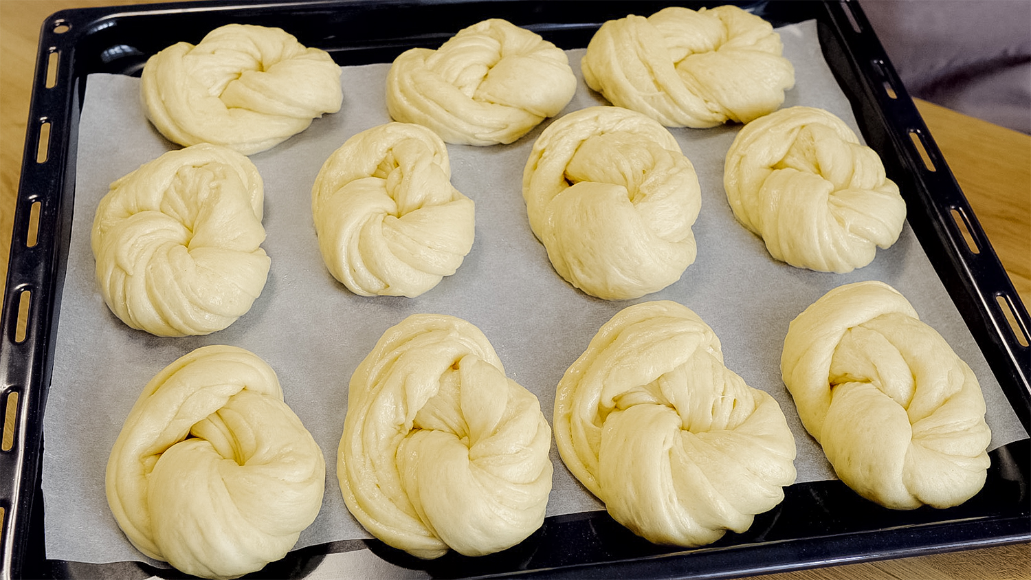 Молоко тёплое (240 мл). Сахар (2 ч л). Сухие дрожжи (10 г). Оставить на 10 минут. Яйца (2 шт). Сахар (100 г). Соль (½ ч л). Ванильный сахар (10 г). Сливочное масло (100 г). Мука (650 г). Смазать растительным маслом. Накройте и оставьте в тёплым месте на 30 минут. Сливочное масло (50-60 г). Накройте и составьте в 10 минут. Накройте и составьте в 10 минут. Яичный желток (1 шт) + молоко (1 ст л). Выпекать при температуре 200 °C 20 – 25 минут. Сливочное масло #тестокакпух #булочки #рецептбулочек #пушистыебулочки #выпекатьбулочки
