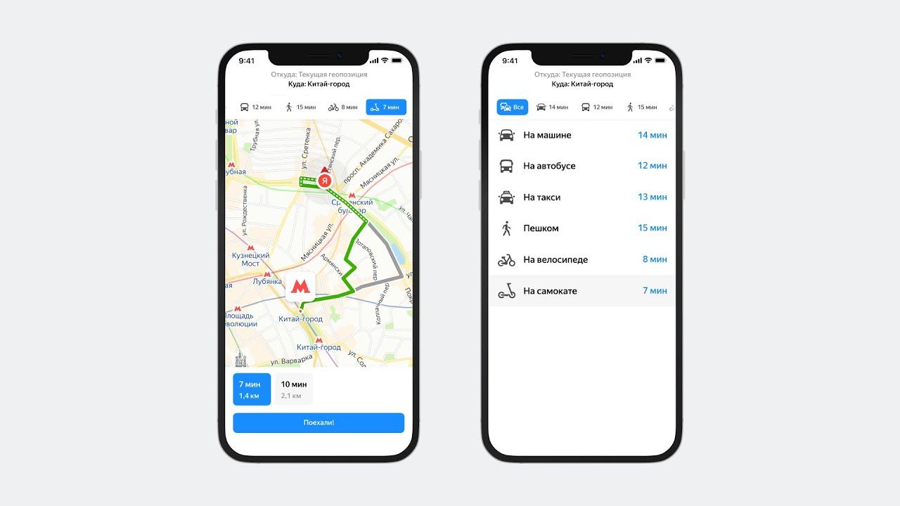 Как в Яндекс Картах построить маршрут для самоката или электросамоката ?