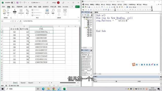【VBA】 40 验证手机号位数 匹配开头和结束 test函数 RegExp verify mobile phone numbers | "^" "$" | Test Function
