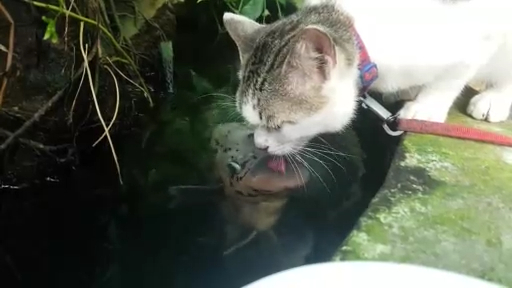 Бесстрашная рыба решила поцеловать кота, который пришел пить воду из пруда. #рыба #кот #прикол #милота