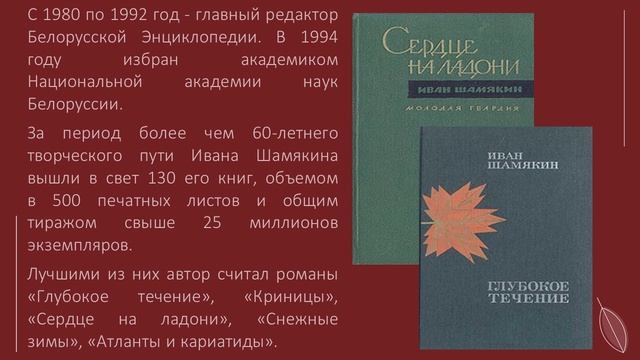 Ролик познакомит Вас с жизнью и творчеством выдающегося белорусского советского писателя Ивана Петровича Шамякина. В ролике представлены произведения, которые хранятся в фондах Смоленской областной универсальной научной библиотеки им. А. Т. Твардовского.