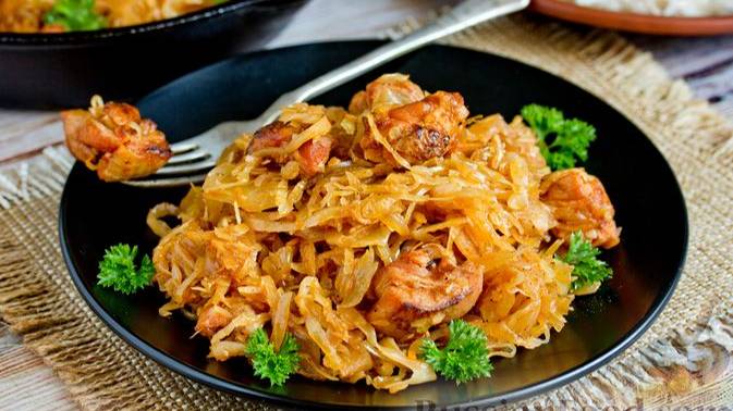 Простое блюдо с аппетитным ароматом. КВАШЕННАЯ КАПУСТА, ТУШЕННАЯ С КУРИЦЕЙ