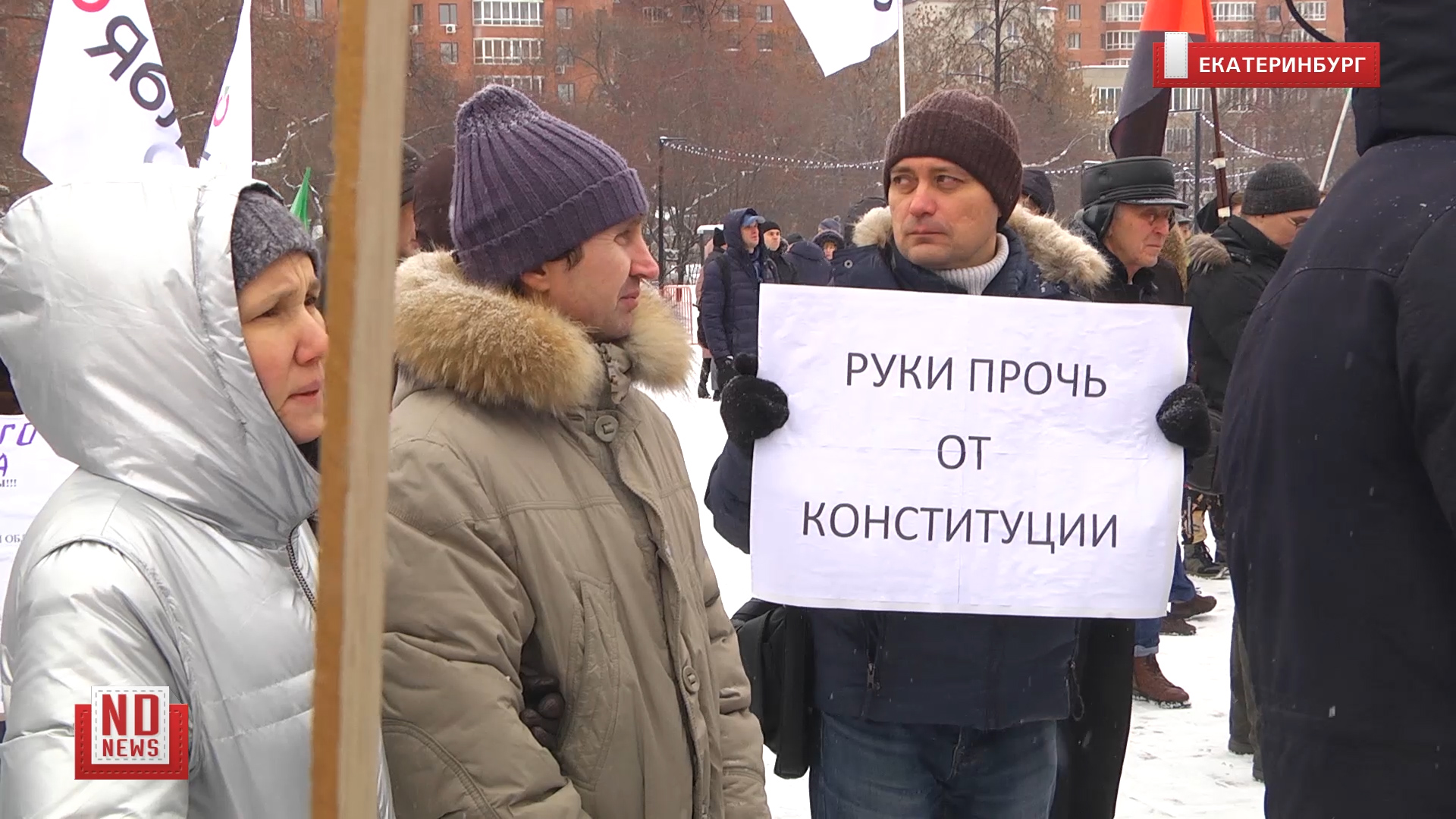 1 февраля 2020 года. В Екатеринбурге на площади Обороны прошел митинг в защиту основного закона РФ. В мероприятии участвовали порядка 150 человек. Со слов организаторов протестной акции, они первые, кто в России проводит митинг против поправок, которые вносятся в основной документ страны. Подробнее – https://newdaynews.ru/ekaterinburg/682561.html