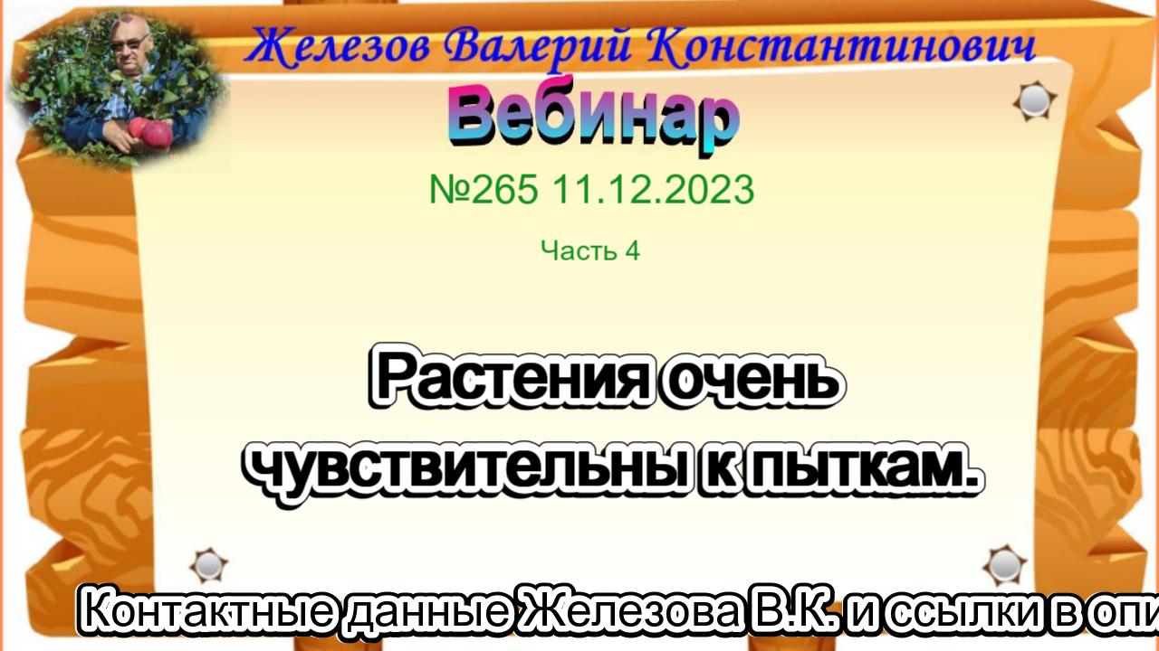Железов Валерий. Вебинар 265. ч.4. Растения очень чувствительны к пыткам.