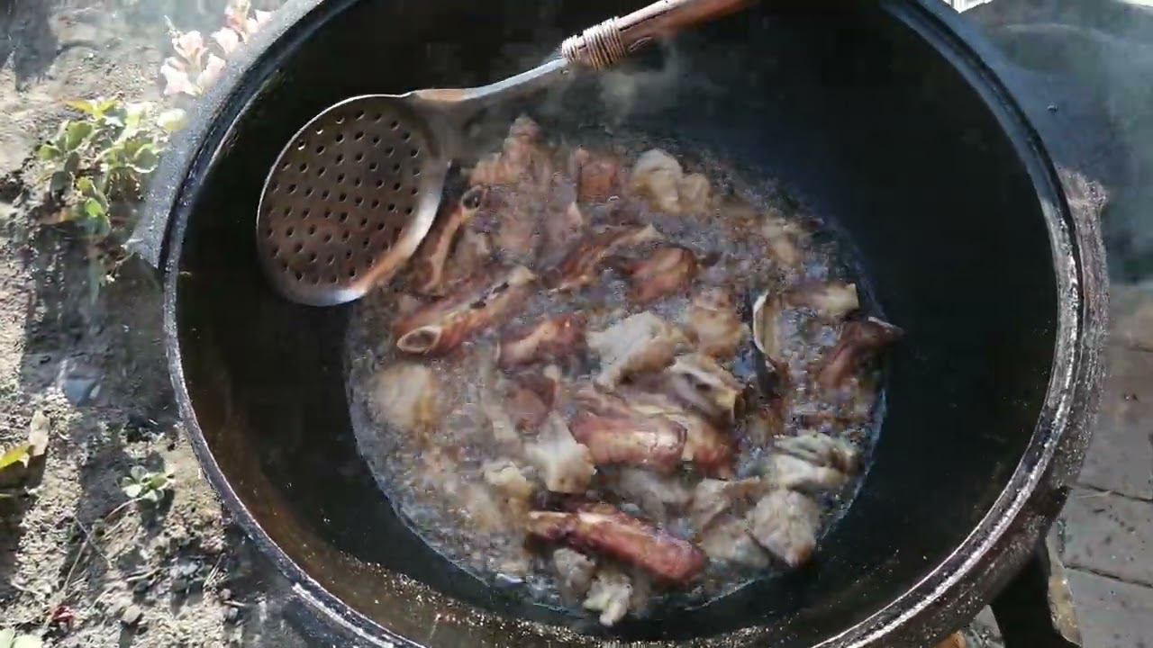 Обжарка мяса для плова