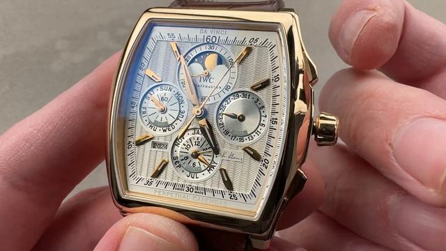 *перевести видео можно в Яндекс браузере МКК да Винчи Вечный календарь Курт Клаус ограниченным тиражом (IW3762-03), заключенная в 43мм розы вокруг серебристым циферблатом на коричневом ремешке из кожи аллигатора. Лимитированная серия часов IWC Da Vinci Perpetual Calendar Kurt Klaus включает в себя часы, минуты, секунды, хронограф, фазу Луны, день недели, дату, месяц и вечный календарь. Толщина модели IWC 3762 также составляет 15,1 мм, а расстояние от выступа до выступа - 51,1 мм. Для получения более подробной информации ознакомьтесь с полным обзором лимитированной серии вечного календаря IWC Da Vinci от Курта Клауса.