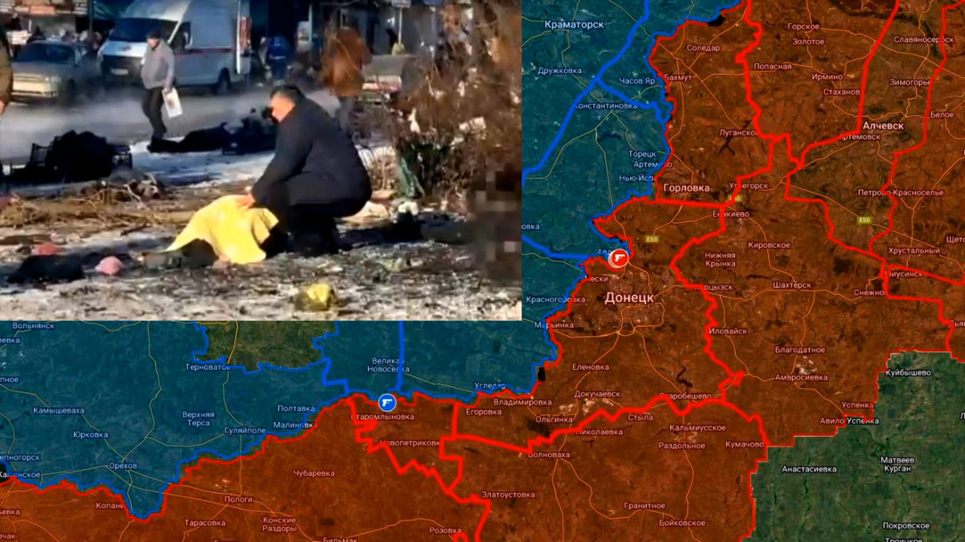 Вооруженные силы Украины (ВСУ) обстреляли территорию рынка с большим скоплением людей в Кировском районе Донецка ранее в этот день. Информация о последствиях обстрела продолжает поступать. По последним данным, 27 человек стали жертвами этой атаки, 25 человек пострадали. Минздрав РФ также сообщил, что 18 человек были госпитализированы, в том числе двое детей. Многие из пострадавших находятся в тяжелом состоянии. Ссылка на карту: https://www.google.com/maps/d/u/0/viewer?mid=1Iq3OLZYhIJ3WN5Lrn8jlkCjpY8Cd9uY&ll=48.17254990227793%2C37.76721109678275&z=11&entry=yt