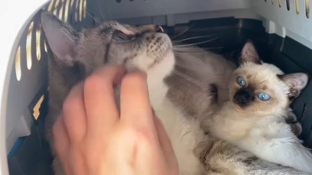 Котенок Оливка с новым другом, котом Фариком, полная идиллия