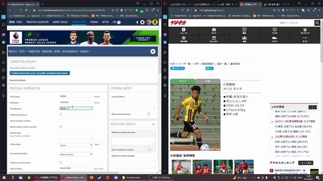 This is a tutorial video how a newly created profile of a Japanese football player can be edited correctly. This is part 1 of a 2 part video. Music: Music from Uppbeat (free for Creators!): https://uppbeat.io/t/soundroll/all-the-things-you-love License code: LPNS4UYAX2ER7XJI https://uppbeat.io/t/walz/golden-age License code: FE7CANZDFYFLTLLM https://uppbeat.io/t/pryces/music-is License code: TNSWA9ZHKR8YEOK2 https://uppbeat.io/t/walz/ang License code: UU9DLDCNWWQDR6RV Any questions: Twitter - @ConDrei Transfermarkt - @ConDrei E-Mail - condreitransfermarkt@gmail.com
