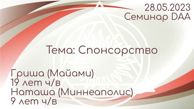 Семинар DAA: Спонсорство. Наташа (Миннеаполис) 9 лет ч/в и Гриша (Майами) 19 лет ч/в. 28.05.2023 г.