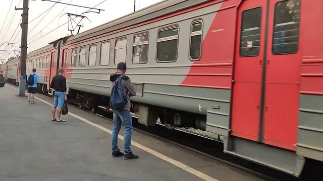 Электропоезд ЭД4М-0331 (Приписан ТЧПРИГ-32 Новосибирск (ЗСЖД)) сообщением №6628 Черепаново - Новосибирск-Главный прибывает к о.п. Совхоз Бердский. Западно-Сибирская железная дорога. Новосибирская область. 08.08.2022