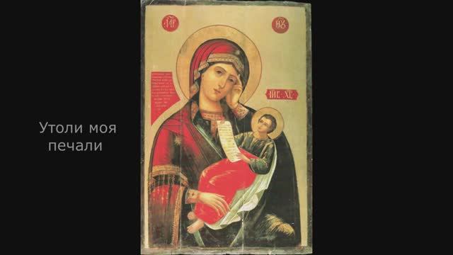 Исполнение и видеоряд НаталИи Ежковой Анна Шипулина и Наталья Харитонова УТОЛИ МОЯ ПЕЧАЛИ, Матерь Божия, Дети бы не огорчали, не тревожили. Их возьми под свой ПОКРОВ, Мати Вышняго! И меня ВЗЫСКУЙ, конечно, ПОГИБШУЮ. Исцели их от болезней, ЦЕЛИТЕЛЬНИЦА, И избавь их от страстей, ИЗБАВИТЕЛЬНИЦА. Будь для всех их добрых дел СКОРОПОСЛУШНИЦЕЙ. А покаяться в грехах – стань им СПОРУЧНИЦЕЙ. Помолись о них и ПРИЗРИ НА СМИРЕНИЕ,. ВСЕЦАРИЦА, будь для них УМИЛЕНИЕМ. И наказывай и милуй их, ОТРАДНАЯ, Но до НЕБА, доведи, БЛАГОДАТНОГО. УМЯГЧИ, Ты, их СЕРДЦА к своей матери, Чтоб любовь свою ко мне не утратили. Претвори моя грехи в покаяние, И в НЕЧАЯННУЮ РАДОСТЬ – страдания.