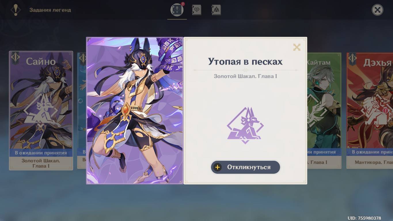 Genshin Impact. 0425. Задание легенд: Утопая в песках; Золотой шакал. 02 (Сайно).
