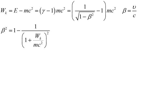 Наглядно показана связь кинетической энергии электрона с его скоростью в единицах скорости света.