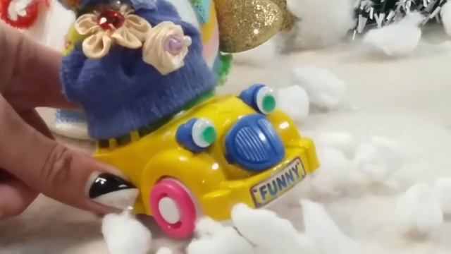 Новогоднее видео. Снеговик и машинки играют в снежки