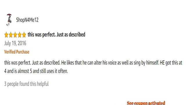 Coupon Activated Discounted Amazon Link For Both Prime & Non-Prime Customers : https://geni.us/OEgOs Note : Discounts may vary from 5% up to 12% depends on the product availability. Product Name : WISHTIME Kids Music Karaoke Microphone Toys X'Mas Gift Toddler Singing Karaoke Microphone for Recorder with Music and Light Chritsmas Gift Product Description : 【Microphone Recorder】A great Music Microphone Toy for Baby has Sounds and songs recording functional 【Voice Changer】Baby toy Recording Function:Repeating sound and inflexion speach educational kids wireless microphone 【Musical Toys】Developing Kids Learing Ability:Early learning center teaches toddlers to sing and learn musical toy 【Volume Controls 】Interactive toy is perfect for infants and toddlers; toy features on/off switch and 2 different volume controls 【Kids Karaoke】Singing Microphone Musical toys is a Fun Portable toy with easy grip handle for little hands and the buttons that changes the songs is easy for little ones to turn also. Cute idea for a toy that will be played with for a long time Wishtime is a professional seller for kids toys on Amazon. From baby rattles (0-12),music toys(1-3),drawing board(3+),pop beads(3+), voice command robot(6+)and so on. We also focus on developing new Smart, Electronic and Intellective and Interesting toys for kids. Multi-Function Microphone recorder Voice changer Volume control Kids karaoke 5 songs Comment Your Options About : WISHTIME Kids Music Karaoke Microphone Toys X Mas Gift Toddler Singing Karaoke Microphone for Recorder with Music and Light Chritsmas Gift