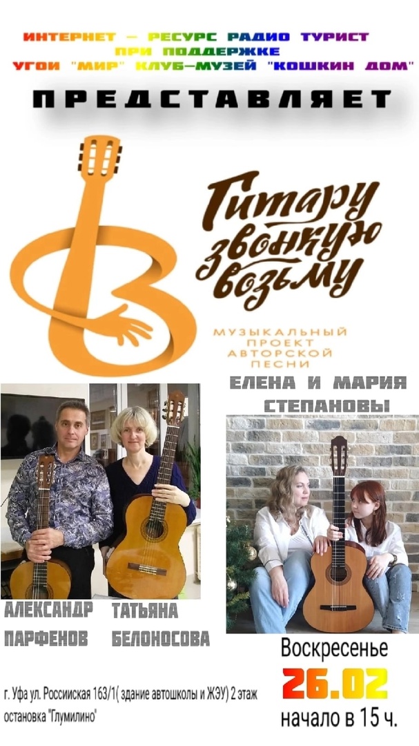 Концерт музыкального проекта "Гитару звонкую возьму". Елена и Мария Степановы, Татьяна Белоносова и Александр Парфёнов.