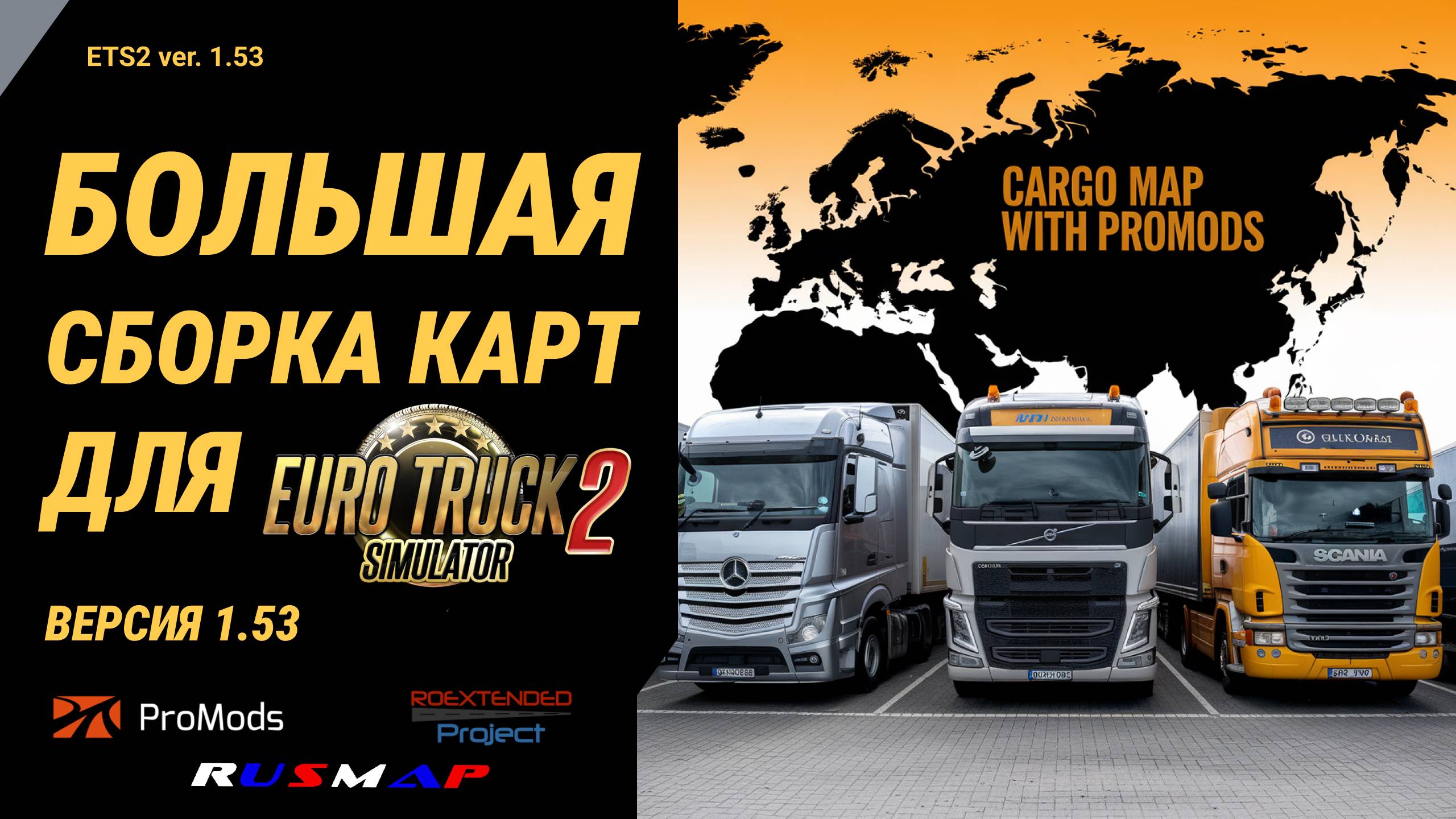 Мега Сборка Карт для ETS 2 v1.53🚛 Cargo map Combo 🌍 ProMods RusMap SibirMap ROEX ...