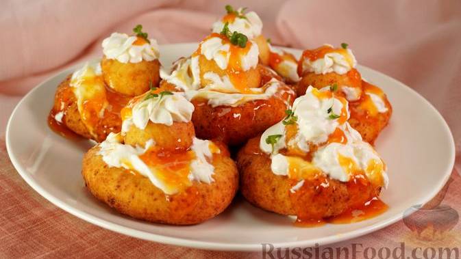 Папанаши - румынский десерт, творожные пончики, которые подаются с вареньем и сметаной. Папанаши формируются из двух частей - в виде бубличков и небольших шариков. Жареные пончики-кольца заполняются вареньем, сверху выкладываются круглые пончики, и десерт поливается сметаной и вареньем. #Пончики #ТворожноеТесто #БлюдаИзТворога