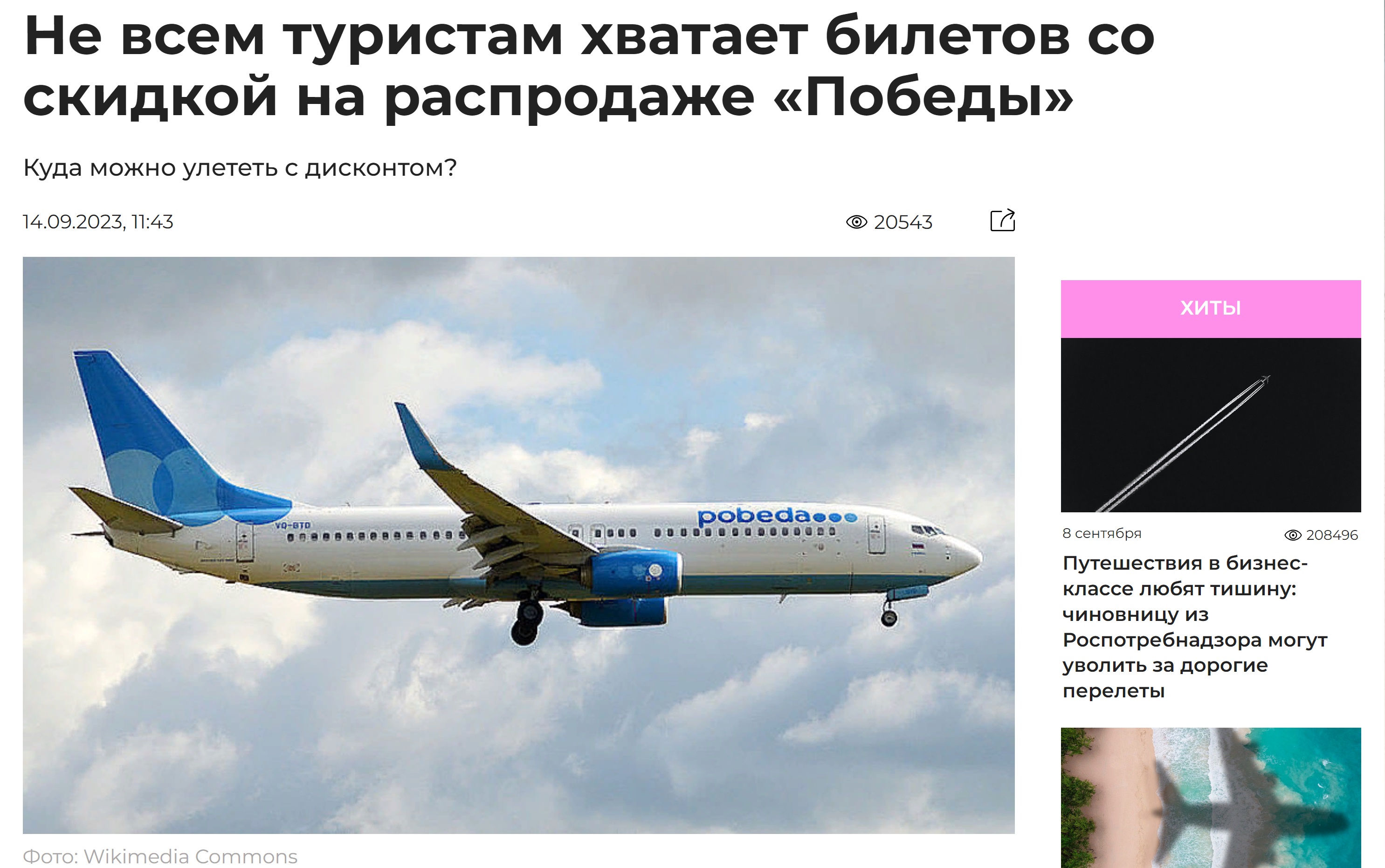 Новости туризма 14/09/2023 Не всем туристам хватает билетов со скидкой на распродаже «Победы»