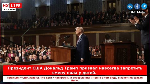 НХ-LIFE: Президент США Дональд Трамп призвал навсегда запретить смену пола у детей. Президент США заявил, что дети «прекрасны и совершенны именно в том виде, в каком их создал Бог». 4 марта 2025 года президент США Дональд Трамп выступил с речью на совместном заседании Конгресса в Капитолии США, в которой он призвал ввести криминальную ответственность за операции по смене пола у детей. Речь Трампа опубликовал Youtube-канал Белого дома. «Я хочу, чтобы Конгресс принял закон, который раз и навсегда запрещает и криминализирует операции по изменению пола. Это ложь, что ребенок оказался не в том теле. И наш посыл ко всем детям Америки – вы прекрасны и совершенны именно в том виде, в каком вас создал Бог», – сказал президент США, выступая перед Конгрессом. Ссылка: https://spzh.eu/ru/news/85268-tramp-prizval-navsehda-zapretit-smenu-pola-u-detej