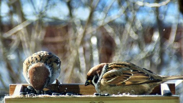 Воробьи в кормушке -