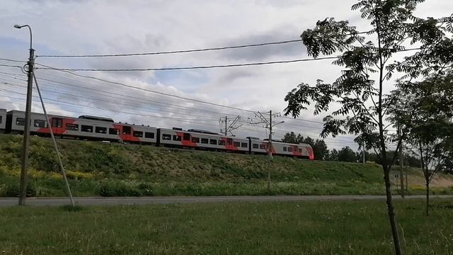 Поезд "Ласточка" на перегоне в сторону Ладожского вокзала (12.06.2022) [архив]