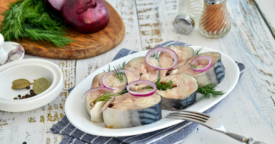 Скумбрия 2 шт. Вода 0.5 л Соль 2 стол.л. Сахар 1 чайн.л. Лавровый лист 3 шт. Душистый перец 5 шт. Перец горошком 10 шт