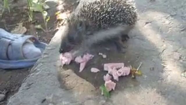 Ежик кушает