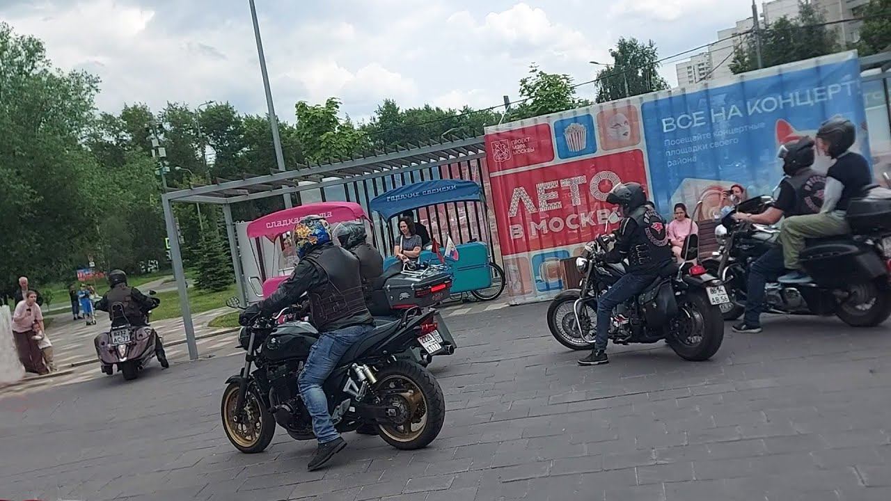 В рамках празднования государственного праздника День России в Ново-Переделкино прошёл концерт "Россию мы Родиной зовём". Праздничные мероприятия состоялись на летней сцене района, на Лукинской улице. К началу концертной программы сюда прибыли байкеры московского мотоклуба "Ночные волки". С ними можно было сфотографироваться и пообщаться на разные темы. В самый разгар концерта мотоциклисты организованной колонной покинули мероприятие. Вашему вниманию разъезд участников мотоклуба. #деньроссии #новопеределкино #байкеры
