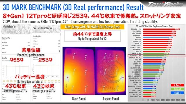 Xiaomi Pad 6 Pro レビュー 結果を紹介します。 8+gen1に2.8K/144Hzの画面を搭載した超高性能タブレットで、 大きな問題がなく、画面・スピーカ・3D性能、全てが高性能で 安心して使える完成度が非常に高い端末でした。 またはカメラがローエンドカメラセンサーなのに性能が高く 信じられないぐらいの性能を発揮しています。 撮影した写真にについて、Twitterでアンケートも撮りました。 https://twitter.com/ToviWorks/status/1662240161499951104 約9割の方がミドル・ハイエンドセンサーで 撮った写真と感じるレベルの驚きの写真が撮れています。 流石に動画は、低照度環境は真っ黒だったり、ブレは凄いですが タブレットの放熱性を活かして、最新8gen2を搭載しなかったのが 非常に悔やまれる端末ですが、その分価格を抑えた所は良い点でしょう 【目次】 00:00 開封と概要 01:23 高級感あるデザイン 02:04 でっぱり多めのカメラデザイン 02:35 端末重量 02:43 初期設定と初期状態 03:52 2.8K画質・視野角 04:37 そこそこいいスピーカ性能 06:11 スピーカ周波数特性 06:28 安定のAntutu性能と考察 06:52 3D実用性能 07:25 バッテリー持ち普通 07:47 メインカメラ仕様と性能 08:09 対応撮影モード一覧 08:18 驚きの写真性能 11:10 動画性能 12:19 まとめと課題点 ・Xiaomi Pad 6 Pro 概要 https://www.mi.com/xiaomi-pad-6-pro ーーーーーーーーーーーーーーーーーーーーー Video: Copyright©️ 2023 Xiaomi Corp. https://www.youtube.com/watch?v=uqTy9bH9ask ------------------------- Track: Copyright© Heuse & Zeus x Crona - Pill (feat. Emma Sameth) [NCS Release] Music provided by NoCopyrightSounds. Watch: https://www.youtube.com/watch?v=CLiXUT3MS34 アーティスト: Heuse, Zeus X Crona, Emma Sameth ーーーーーーーーーーーーーーーーーーーーー #xiaomipad6pro #Xiaomi #iPad