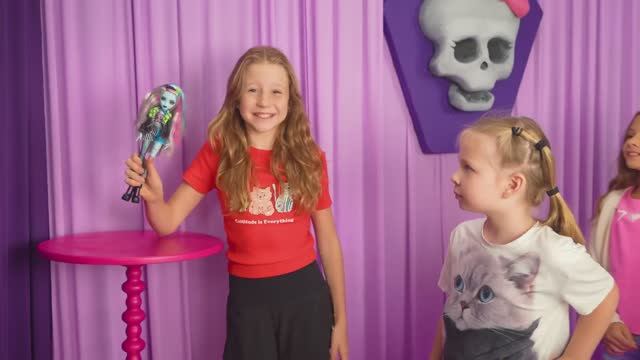 Настя с друзьями играют в школу Монстр Хай