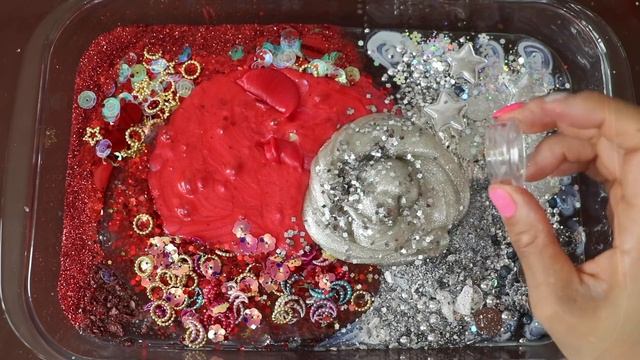 Смешиваем «красные и серебристые» тени и макияж, блёстки в слайм! Увлекательное видео со слаймом!