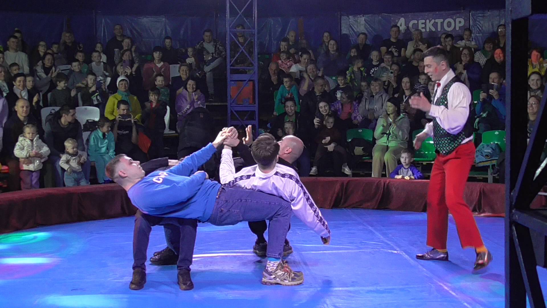 Клоун и орловские ребята в цирке. Цирк Белиссимо в городе Орле. Город Орёл