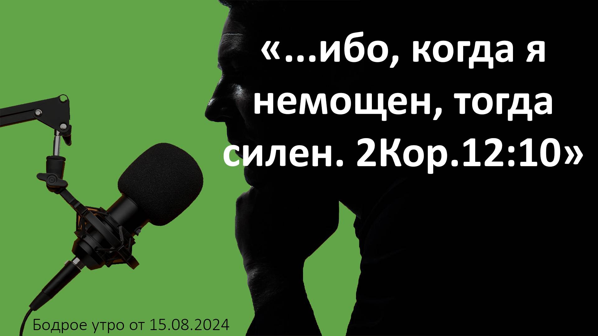 Бодрое утро 15.08 - «.... ибо, когда я немощен, тогда силен. 2Кор.12:10»