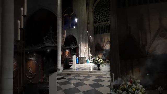 Потрясающе красивая месса в соборе Парижской Богоматери. Специально снимал вертикально, чтобы передать высоту сводов