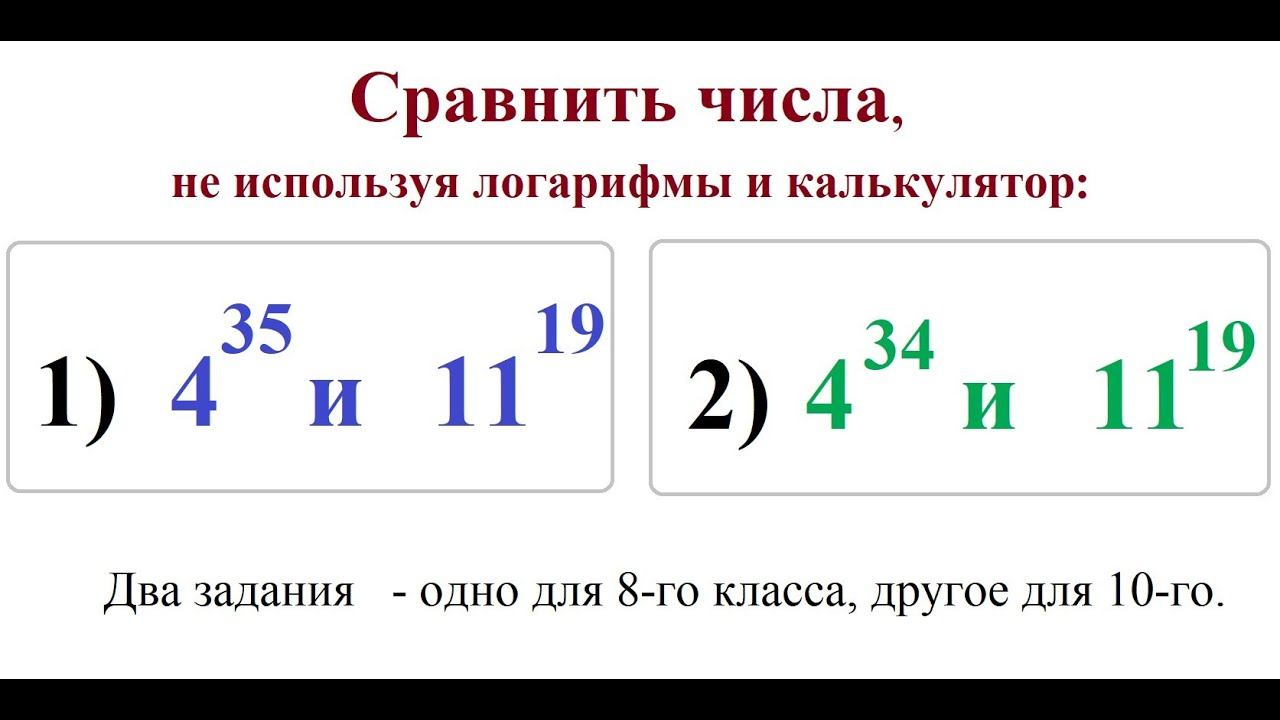 Сравнить числа без логарифмов и калькуляторов.