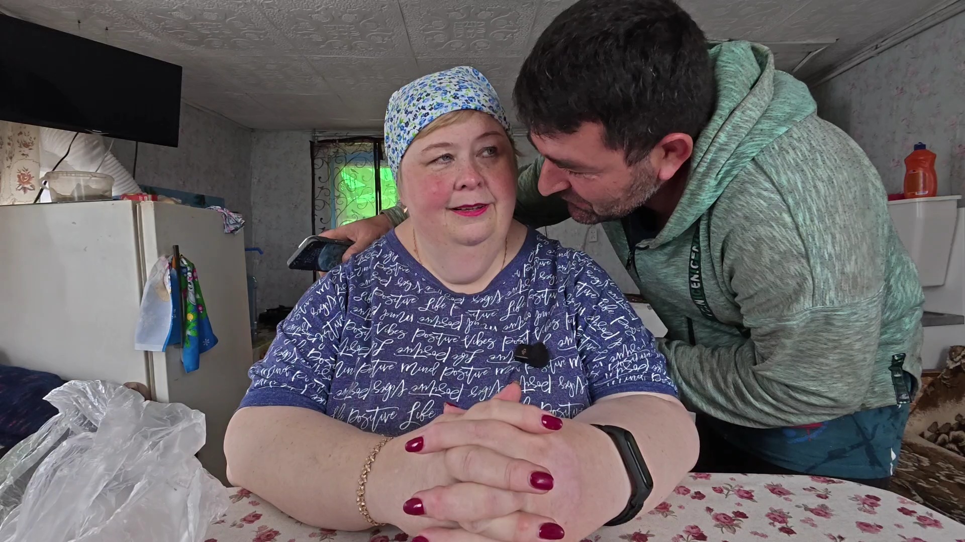 Рыбка готовится в теплице пока идёт дождь. Ещё в одной теплице высадили рассаду.