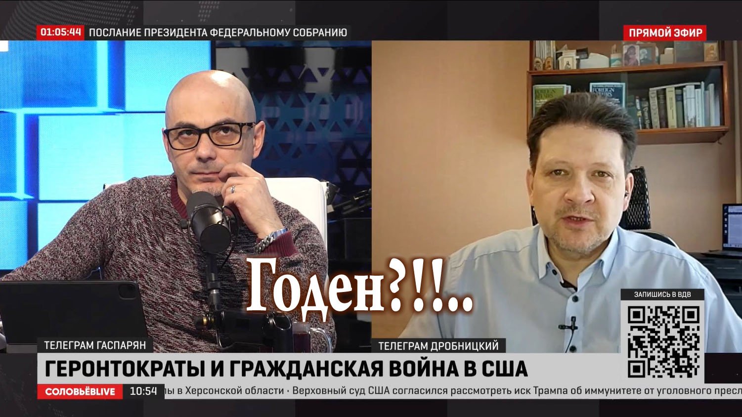 Политолог-международник Дмитрий Дробницкий в программе "Полный контакт" на канале "Соловьёв Live" 29.02.2024. Подписывайтесь на Telegram-канал «ДРОБНИЦКИЙ»: https://t.me/DDrobnitski И на блог Дмитрия Дробницкого ВКонтакте: https://vk.com/dmitri0586 . Фирменный товар канала можно приобрести онлайн: https://dmitri0587.printdirect.ru/ . Способы просмотра канала «Соловьёв Live» см., набрав в адресной строке Soloviev.Live