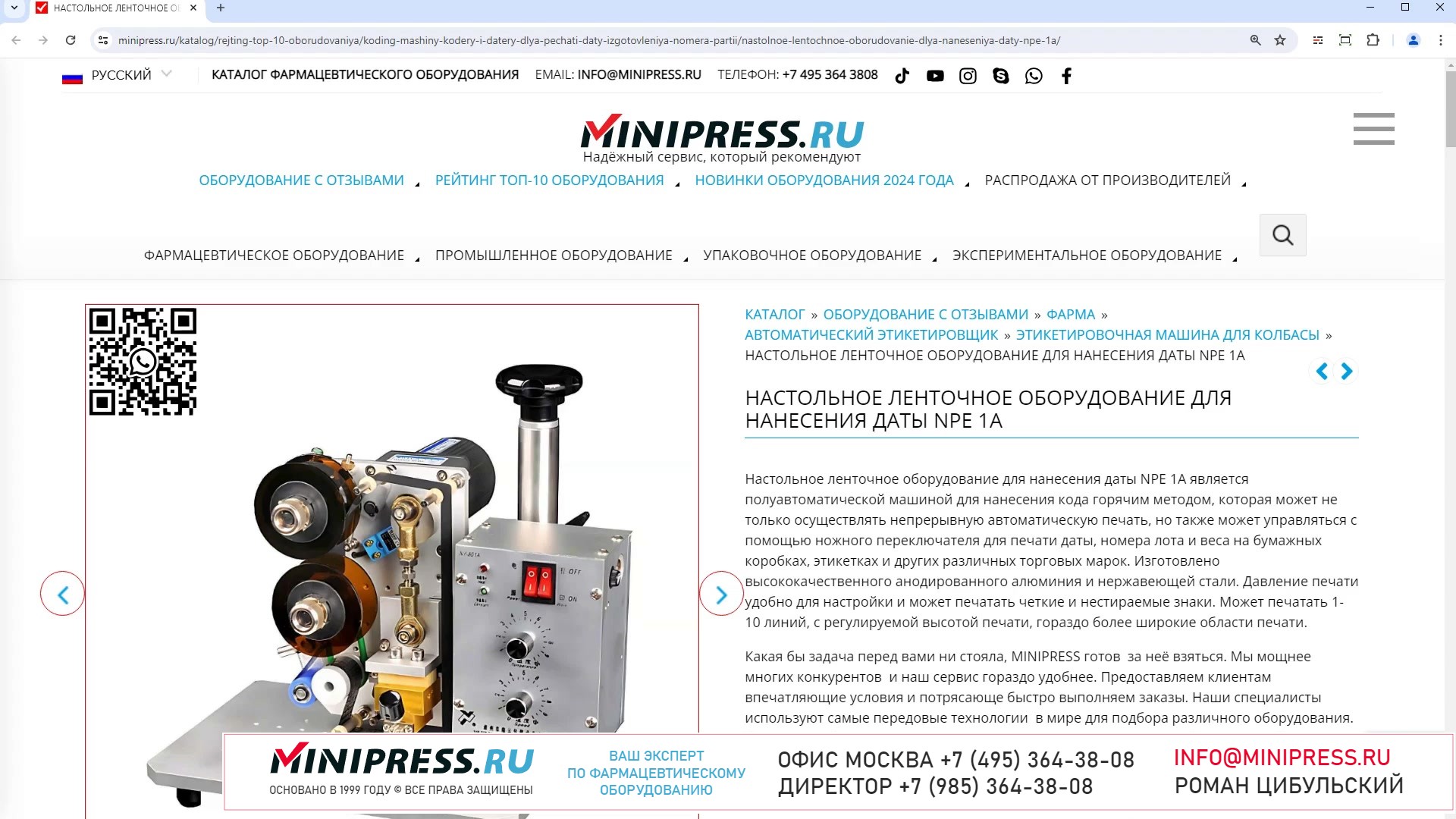 Компания MINIPRESS.RU занимается подбором и поставкой АВТОМАТИЧЕСКИХ УПАКОВОЧНЫХ МАШИН для фасовки таблеток, капсул, драже, гранул, ампул, флаконов и других видов фармацевтической продукции. Оборудование для герметичной, индивидуальной и групповой упаковки в алюминиевую фольгу, фильтр бумагу, полиэтиленовую пленку, нейлон и другие материалы. Компания Романа Цибульского MINIPRESS.RU занимается поставкой большого ассортимента фармацевтического оборудования из Китая, Кореи, Индии, Европы и других стран. Мы выполняем работы по поиску, подбору, закупке, доставке, и таможенной очистке оборудования с доставкой в любой город России и стран СНГ. Основатель и ведущий специалист компании - Роман Цибульский. Компания MINIPRESS.RU (зарегистрированный товарный знак) основана в 2000 году. Онлайн каталог оборудования MINIPRESS.RU ежедневно посещают несколько тысяч человек. Мы развиваем крупные каналы в социальных сетях, посвященные тематике фармацевтического оборудования. Вы можете посмотреть видео ролики об оборудовании, которым мы занимаемся. Фактически у нас самый большой в России многоязычный каталог фармацевтического оборудования с фотографиями, описаниями, и что более важно с ценами и видео демонстрацией оборудования в работе. Подбор оборудования и консультации ведет сам владелец компании - Роман Цибульский. Компания имеет огромный опыт в работе с различным оборудованием, технологиями. Помогаем клиентам выбрать модель фармацевтического оборудования, которое сможет решить поставленную задачу. Наши специалисты помогают рекомендациями в решении проблем по эксплуатации оборудования. Наша компания имеет офис в г.Шанхай и несколько менеджеров, которые помогают в работе с китайскими поставщиками. Мы долго сотрудничаем и дружим с этими специалистами. Китайские поставщики ценят нас как постоянных партнеров. Роман Цибульский Директор компании Минипресс Поставка фармацевтического оборудования в Россию Пишите: info@minipress.ru Gmail: boss.minipress@gmail.com Офис в Москве +7(495)364-38-08 Мобильный +7(985)364-38-08 (WhatsApp) Каталог оборудования https://www.Minipress.ru/katalog/ МИНИПРЕСС.РУ В СОЦИАЛЬНЫХ СЕТЯХ FB https://facebook.com/roman.tsibulsky YOUTUBE https://www.youtube.com/@farmacevticheskoe_oborudovanie INSTAGRAM https://www.instagram.com/farmacevticheskoe_oborudovanie/ #распыляемость #модернизация #технолог #запайка #насос #дойпак #минералы #флакон #саше #этикетировщик