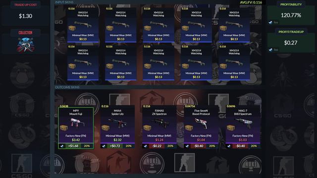 Thanks for Watching Hope you Enjoyed the CSGO Trade Up Trade Up Spy: https://www.tradeupspy.com/ref/grug Trade Up Used: https://www.tradeupspy.com/calculator/share/grug/undefined/false/5/0.116,0.116,0.116,0.116,0.116,0.116,0.116,0.116,0.116,0.116/5306,5306,5306,5306,5306,5306,5306,5306,5306,5306/5299,5297,5298,5300,5301/0.15,0.15,0.15,0.15,0.15,0.15,0.15,0.15,0.15,0.15/3.95,2.37,1.42,1.13,1.05 Discord: https://discord.gg/HwEZwfCRtq More Trade Ups: https://www.youtube.com/playlist?list=PLRZ-uZZw8j3-PRAKy131mJnnWYiyGM1Mi Song Used: https://soundcloud.com/kubbi/up-in-my-jam-all-of-a-sudden -- TIMESTAMPS -- 0:00 - Intro 0:10 - Trade Up Spy 0:23 - Trade Up 1:01 - Doing Trade Up 1:07 - Outro 1:20 - End Card TAGS csgo trade ups,csgo trade ups 2021,trade up,best csgo trade ups 2021,best csgo trade ups,profitable trade ups,csgo profitable trade ups 2021,trade ups csgo,cheap trade ups csgo,no risk trade ups csgo,best no risk trade ups csgo,best cheap trade ups csgo,best cheap no risk trade ups csgo,profitable cheap trade ups csgo,profitable cheap trade ups,best no risk trade ups,no risk trade ups csgo 2021,csgo,best csgo trade ups 2020,csgo trade ups 2020 Title NEW CHEAP & PROFITABLE Mil-Spec Trade Up | CSGO 2021