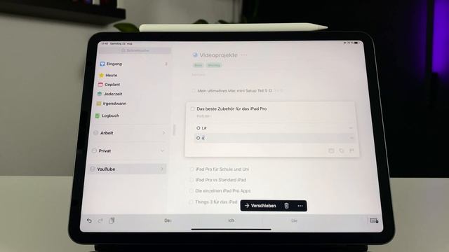 Im heutigen Video stelle ich euch die beste To-Do-App für das iPad vor. Wenn ihr noch Fragen habt, dann stellt diese einfach unter diesem Video! Ladet die App aus dem App-Store: https://apps.apple.com/de/app/things-3-for-ipad/id904244226 ______________________________________________________________________ Unterstützt den Kanal mit einer Spende über PayPal: https://www.paypal.me/MoeKitStudio ______________________________________________________________________ Meine Ausrüstung: iPhone 11 Pro (Kamera): https://amzn.to/2VyN88h * Mac mini (Videoschnitt): https://amzn.to/2KnQ690 * iPad Pro: https://amzn.to/2yS9bh6 * Tastatur: https://amzn.to/2VsngdU * Maus: https://amzn.to/2XVXLU4 * Bildschirm: https://amzn.to/2x1IHcz * Mikrofon: https://amzn.to/2Kotq8L * Studiomikrofon: https://amzn.to/3fAsATZ * –––––––––––––––––––––––––––––– Musik: Last Summer by Ikson: http://www.soundcloud.com/ikson Music promoted by Audio Library https://youtu.be/n2oTA5JSk80 –––––––––––––––––––––––––––––– #iPadPro #Things3 #Apple *Amazon Ref-Links (Ihr zahlt keinen Cent mehr und ich bekomme eine kleine Provision)