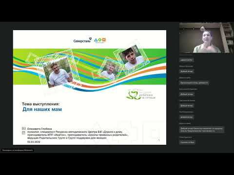 Ведущий - Елизавета Глибина, психолог БФ "Дорога к дому". Вебинар организован в рамках проекта «Родительское просвещение» БФ «Дорога к дому» компании «Северсталь». Приветсвие 01:35 Мамы, они такие... Функции мамы 05:01 Плохая мама 09:29 Хорошая мама 19:01 Кто такая мама? 24:28 Инстинкты зависимости 31:31 Потребности 26:02 Ресурсы первого порядка 38:02 Ресурсы второго порядка 56:55 Мамин ресурс: история в картинках 01:04:52 Забота о себе 01:05:30 Завершение
