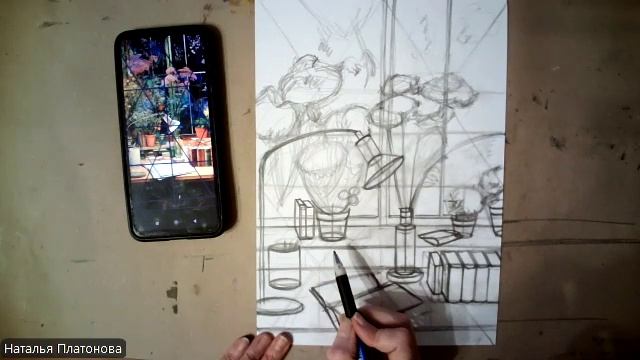 Первый этап - это компоновка предметов в листе и построение. Второй - пишем фон.