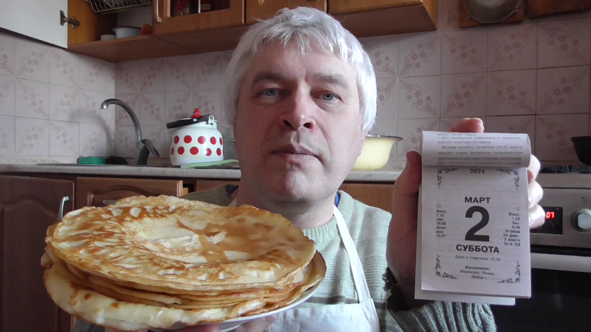 Сегодня 2 марта 2024 года. Я сегодня готовил блины на кефире