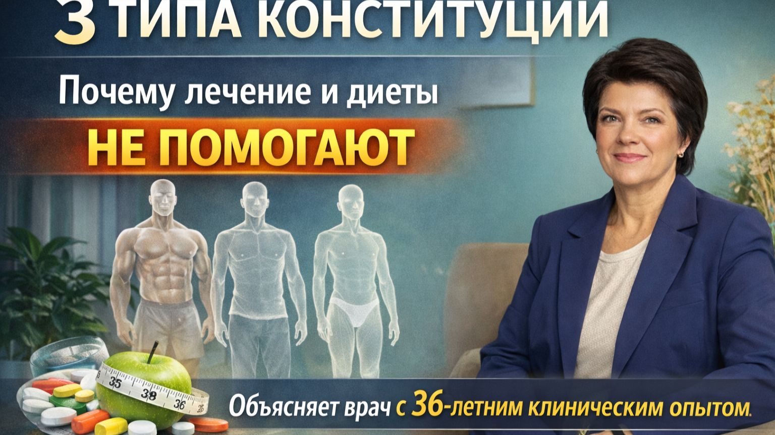 Пройдите мини-тест по определению своего типа конституции https://doctorbochkareva.ru/constitution-quiz Почему одни люди быстро восстанавливаются, а другим не помогают ни диеты, ни лечение? Дело может быть не в лекарствах, не в силе воли и даже не в анализах. Очень часто причина — в конституциональном типе организма. В этом видео врач с 36-летним клиническим опытом Елена Владимировна Бочкарёва объясняет, как работают 3 типа конституции и почему стандартные подходы к здоровью могут не давать результата. Вы узнаете: • что такое конституция организма и почему это «операционная система» тела • почему люди с одинаковыми диагнозами болеют и восстанавливаются по-разному • почему диеты, лечение и рекомендации могут помогать одним и не работать у других • как особенности организма влияют на энергию, вес, иммунитет и реакцию на стресс • с чего начинается системное восстановление здоровья Это видео будет особенно полезно, если вы замечаете у себя: — анализы «в норме», но сил всё меньше — вес возвращается, несмотря на диеты — лечение помогает только временно — после стрессов, болезней или гормональных изменений организм как будто «сломался» — вы устали подбирать схемы лечения и хотите понять логику работы своего тела В конце видео вы узнаете об онлайн-семинаре «3 типа конституции», где Елена Бочкарёва подробнее разберёт: • как определить свой тип конституции • какие ошибки чаще всего мешают восстановлению здоровья • с чего правильно начинать путь к энергии и восстановлению организма регистрируйтесь на семинар, чтобы принять участие в розыгрыше индивидуального разбора. https://doctorbochkareva.ru/3-constitutions-lecture