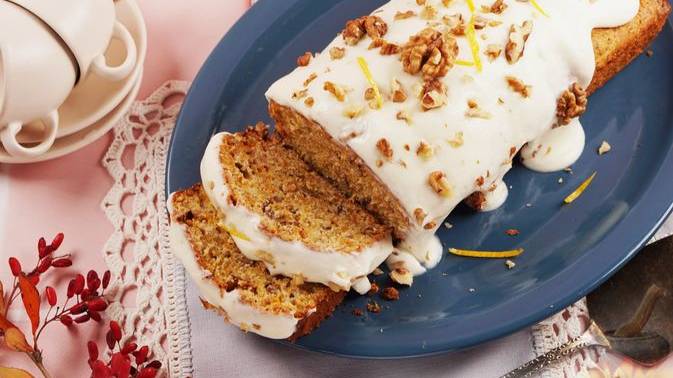Домашняя выпечка с праздничным акцентом - тыквенный кекс с орехами и сметанным кремом с добавлением апельсинового сиропа. Тыква для теста натирается на мелкой тёрке и в готовом кексе практически не ощущается. Добавленные в тесто сок и цедра апельсина приятно освежают тыквенный вкус цитрусовой ноткой, а подсушенные орехи привносят свой неповторимый теплый аромат.