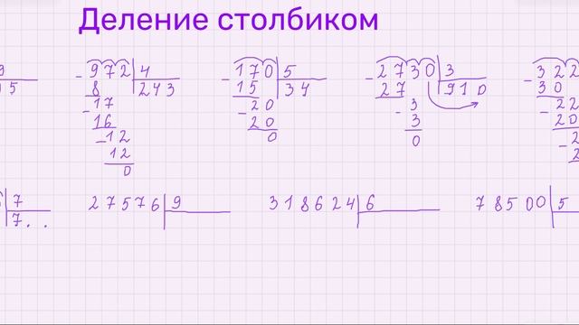 Все случаи деления столбиком на однозначное число. Проходят в третьем классе. С ребятами из третьего класса мы начинаем изучать тему чуть раньше, чем в школе. Тогда они чувствуют себя на уроках увереннее, активно тянут руку, получают хорошие отметки. Конечно, одновременно все эти случаи не даю, долго сидим на примерах вида трех первых на видео. Потому что трудновато бывает. И обязательно требуется знание таблицы умножения в автоматизации. Так что если ваш ребенок учится в третьем классе, проверьте скорость и правильность ответов на случаи табличного умножения и деления. Я репетитор, преподаю онлайн математику ученикам 2-7 классов. Я на Профи: https://profi.ru/profile/GridinaYN5 Учебные ролики по математике размещаю в своем канале ТГ и в сообществе ВК Я в ВК: https://vk.com/elena_nikolaewna_repetitor Я в Телеграм: https://t.me/repetitormatemrus Рутуб: https://rutube.ru/channel/40303769/ Личные сообщения в Телеграм: https://t.me/Elena_Nikolaewna_repetitor Мой Телеграм-канал: https://t.me/repetitormatemrus Запись на занятия: https://t.me/Elena_Nikolaewna_repetitor или в ВК #ЕленаГридина #онлайн #учись легко #школа #деление #репетитор #обучение #математика
