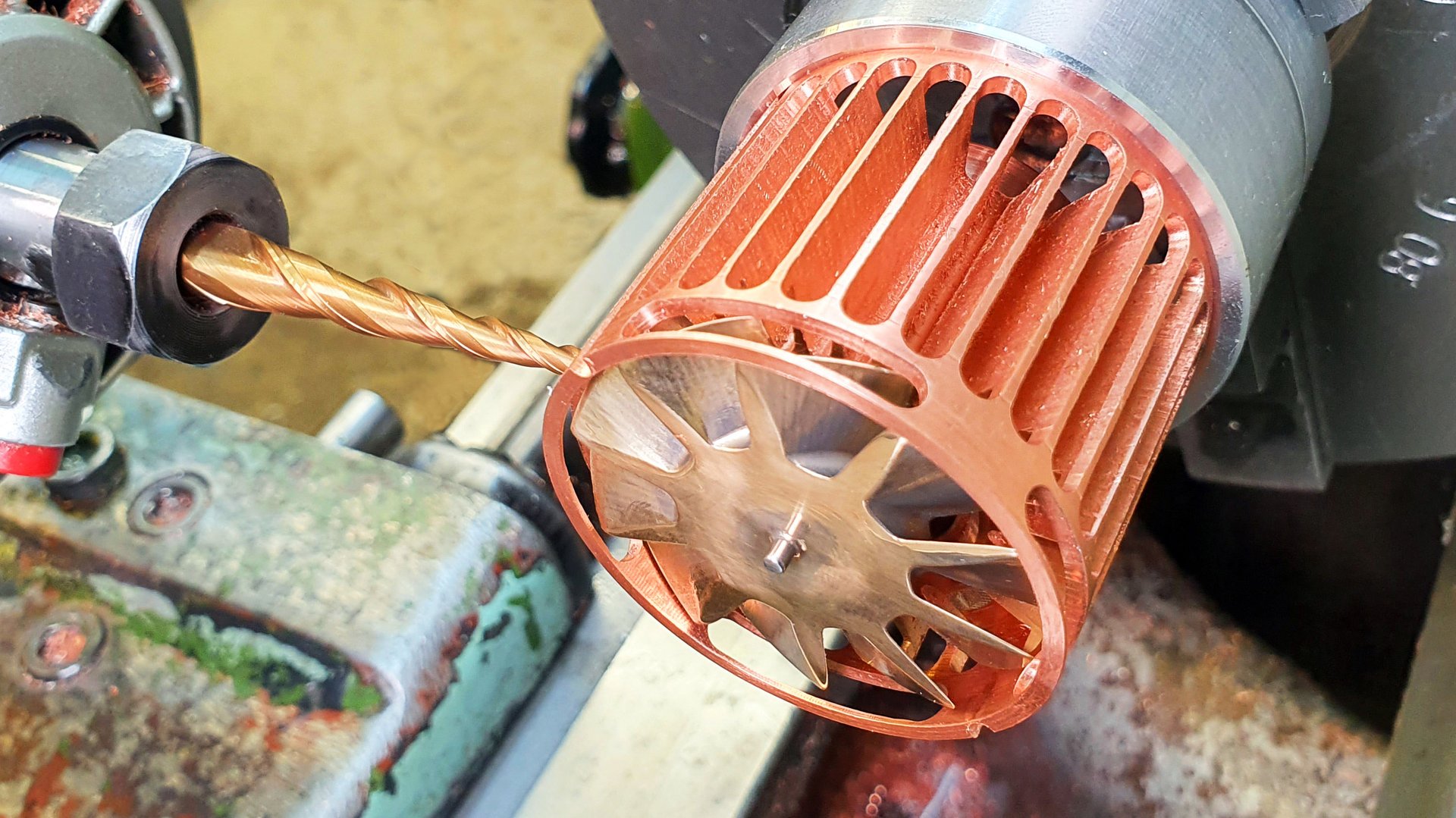 Никто не верит что это детали мощного фонарика. Медный радиатор на токарном станке.
