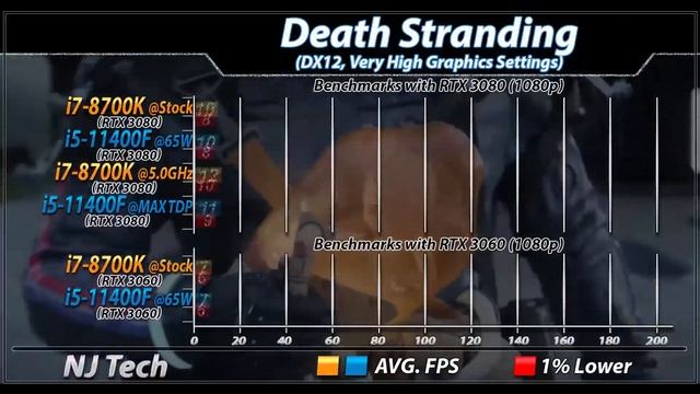 i7-8700K Vs. i5-11400F (65W and MAX Power Limit) | 20 Games and Productivity Benchmarks In this Video I'll Show You Productivity and Gaming Benchmarks of intel Core i7-8700K and intel Core i5-11400F (Both Paired with RTX 3080 and RTX 3060) System Specs : intel Core i7-8700K @ Stock/5.0GHz ASRock Z370 Pro4 Mobo 4*8GB DDR4 CL14 RAM @ 3200MHz intel Core i5-11400F @ Stock / MAX Power Limit ASUS ROG Strix Z590-E Gaming WiFi 4*8GB DDR4 CL14 RAM @ 3200MHz 2TB HDD MSI RTX 3080 Gaming X TRIO Gigabyte RTX 3060 EAGLE OC Corsair RM1000X PSU Productivity Benchmarks : Cinebench R20 Single and Multi-Core Score Blender Open Data Benchmarks Corona 1.3 Benchmarks Adobe Premiere 2020 (Puget System Benchmarks) Adobe Photoshop 2020 (Puget System Benchmarks) 1080p Gaming Test : Resident Evil Village Hitman 3 Cyberpunk 2077 Call of Duty: Warzone Destiny 2: Beyond Light Assassins Creed Valhalla Watch Dogs: Legion Microsoft Flight Simulator Horizon Zero Dawn Death Stranding F1 2020 Shadow of the Tomb Raider Apex Legends Far Cry New Dawn Battlefield 5 PUBG Fortnite : Chapter 2 Rainbow Six Siege Dota 2 CSGO Average FPS (Total Games 20) Stock Performance Difference in Percentage Temperature Power Consumption (Blender Open Data) Also Watch- AMD GPU's Playlist- RX 6000 Series Benchmarks - bit.ly/38sLdYN RX 5000 Series Benchmarks - bit.ly/3v73qES RX 400 Series benchmarks - bit.ly/3vgwKsw Nvidia GPU's Playlist- Nvidia RTX 30 Series Benchmarks - bit.ly/3qwOwUR Nvidia RTX 20 Series Benchmarks - https://goo.gl/MHfdBq Nvidia GTX 10 Series Benchmarks - bit.ly/3rDGfjl intel CPU's Playlist- intel 11th Generation CPU's Benchmarks - bit.ly/3oRBGBi intel 10th Generation CPU's Benchmarks - bit.ly/3eqaiqX intel 9th Generation CPU's Benchmarks - bit.ly/2OHj4Gi intel 7th Generation CPU's Benchmarks - bit.ly/3qCEbGW intel 6th Generation CPU's Benchmarks - bit.ly/3es9v9d intel 4th Generation CPU's Benchmarks - bit.ly/2PWnUQR intel 3th Generation CPU's Benchmarks - bit.ly/3vaFZdU intel 2th Generation CPU's Benchmarks - bit.ly/3eqWIDV amd CPU's and APU's Playlist- Ryzen 5000 Series Benchmarks - https://bit.ly/3v73qES Ryzen 3000 Series Benchmarks- https://bit.ly/3fMRMYW Ryzen 2000 Series Benchmarks- https://bit.ly/3oOcpbv Ryzen 1000 Series Benchmarks- https://bit.ly/3fnFFTo Ryzen APU's Benchmarks - https://bit.ly/3ukPPbz Requested Benchmarks/Comparison Playlist - https://goo.gl/4idZne if You Requested any Benchmarks or Comparison before... Please Check Requested Benchmarks Playlist - https://goo.gl/4idZne Thanks For Support and Watching My Video... Please Subscribe my Channel For More updates.... Twitter - twitter.com/njtech0 facebook - fb.me/njtech0 Email - njtech52@gmail.com Background Music: Elektronomia Sky High pt II NCS Release Intro: Nishanth Kundar Elegant logo Amazon Affiliate Link- Ryzen 5 5600X - https://amzn.to/3le7lep Ryzen 7 5800X - https://amzn.to/3qJ8jAs Ryzen 5 3600X - https://amzn.to/2PZZTbx Ryzen 5 3600 - https://amzn.to/3vuC63M Ryzen 7 3700X - https://amzn.to/3bFd9L4 Core i7-10700K - https://amzn.to/3co7gBa Core i7-10700KF - https://amzn.to/2OsU0mz Core i7-10700 - https://amzn.to/3eM2TTl Core i7-10700F - https://amzn.to/30B3WNq Core i7-9700K - https://amzn.to/3vmIkTh Core i5-10600K - https://amzn.to/3ts06mn Core i5-10600KF - https://amzn.to/3qOKmIo Core i3-10100 - https://amzn.to/3coyMyl Core i3-10100F - https://amzn.to/38zNul2 Core i5-10400 - https://amzn.to/38Cz838 Core i5-10400F - https://amzn.to/3tju383 #8700K #11400F #8700Kvs11400F #11400Fvs8700K #8thGen #11thGen #AMDvsIntel #NJtech